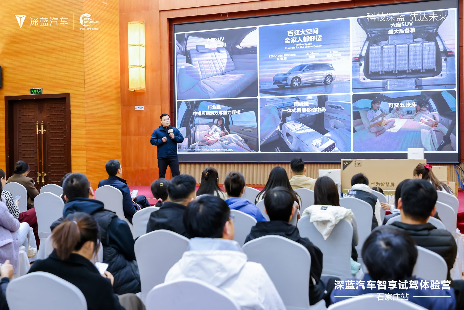 实力车型齐聚,智驾体验再升级 活动以一场震撼开场表演点燃全场,瞬间引爆现场氛围。为深度解析深蓝汽车魅力,特邀产品专家登台,详尽解析三款主力车型:深蓝S07,定位"15万级智能卷王",融合华为乾崑高阶智驾与豪华配置,引领家庭智能出行新风尚;深蓝L07,凭借溜背造型与电动尾翼吸睛,搭载多场景智能驾驶实力;旗舰深蓝S09,以宽敞空间、升级续航及智能科技,打造家庭全能出行伙伴。专家深入解读"超级增程"与华为乾崑智驾系统的核心优势,精准呈现各车型差异化亮点,助力嘉宾全面把握深蓝产品的核心竞争力。