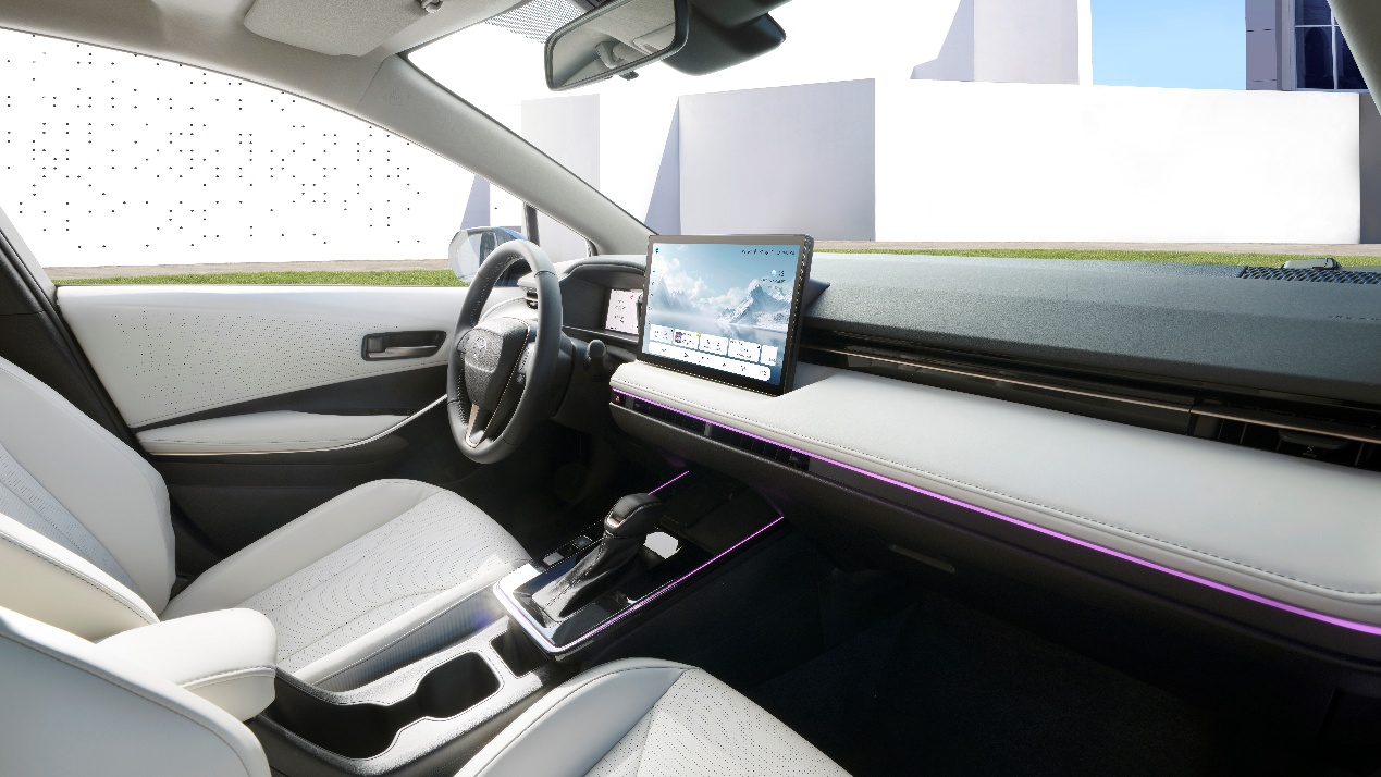 融汇全球设计语言,革新现代美学体验 外观方面,全新智混卡罗拉采用全球化“锤头鲨”前脸设计,呈现蓄势待发的运动姿态。该设计深度融合空气动力学原理,有效降低风阻,提升行驶稳定性与能耗表现,兼具美学与实用性。LED云光灯带,点亮时光线均匀柔和,无光斑、无断点,彰显极致的细节追求。车尾采用一字型贯穿式尾灯,与前脸相呼应,勾勒出沉稳大气的车身轮廓,显著提升整车高级感。 内饰则秉持“LIVING tech”生活科技理念,旨在抛弃冗余的装饰,使用简约的线条,营造出宁静平和的秩序感,带给用户如家般舒适、整洁的座舱空间。水平延展的仪表盘和方形孤岛风格中控台,由功能本身定义产品形态,层次清晰、操作直观。让驾驶者专注前行的同时,享受从容有序的交互体验。