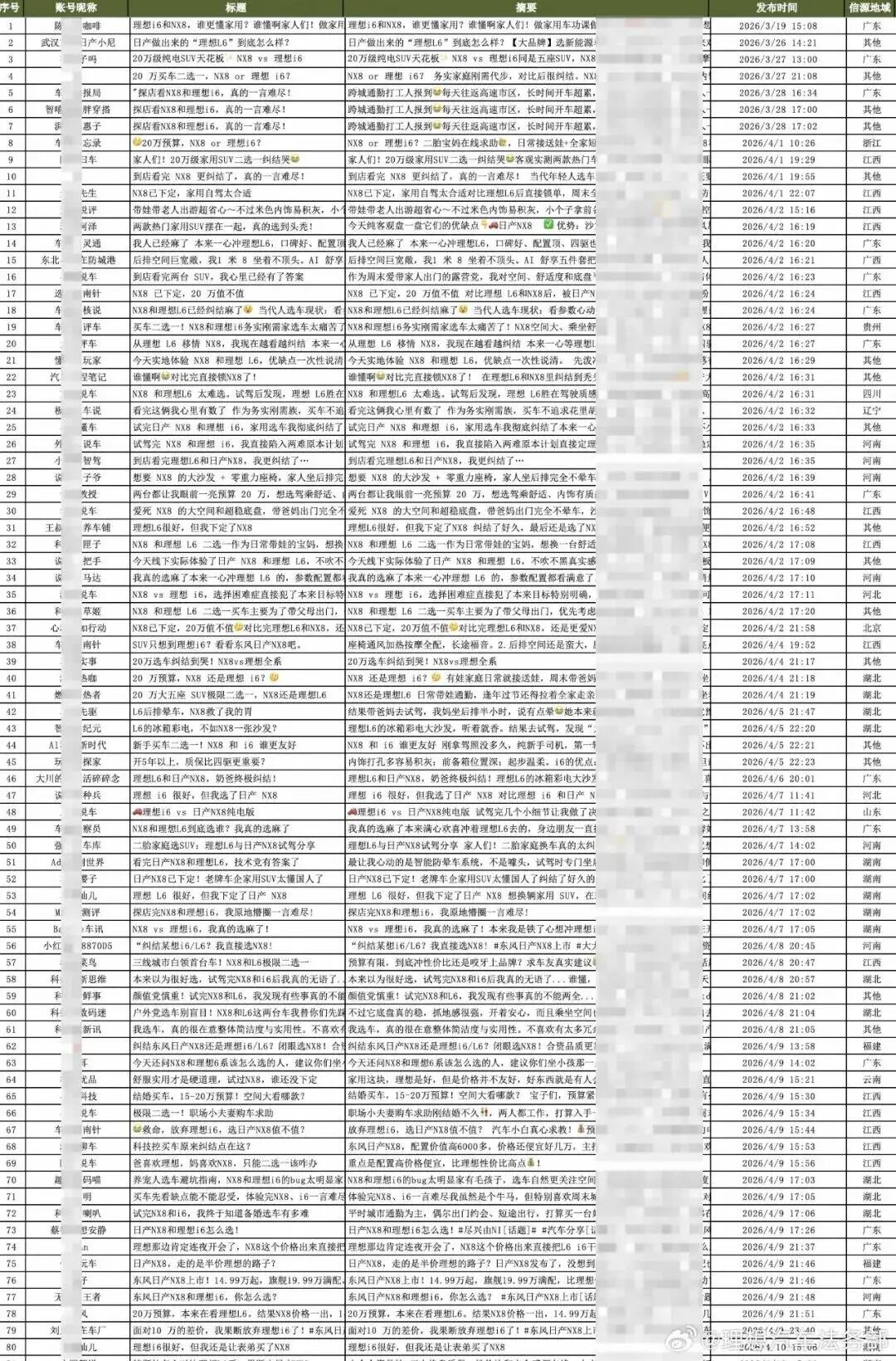 NX8的产品力本有可圈可点之处:增程版CLTC纯电续航310公里,综合续航1450公里,亏电油耗4.51L/100km且可加92号油,优于理想L6的对应数据,上市半小时订单便破8423台,开局看似亮眼。但日产的营销操作却彻底砸了招牌:上市后,社交媒体上突然涌现大量标题一致的内容,清一色吹捧NX8、贬低理想i6和L6,评论区被空白账号复制粘贴式刷屏;李想更是曝光,日产内部培训材料明确写着“向上对标理想,增程替代燃油”,甚至专门要求输出NX8与理想i6的对比表格,一场谋划周密的拉踩战昭然若揭。 三连丑闻:抄袭、水军与价格跳水 如果说拉踩只是手段不纯,那接下来的操作则暴露了底线的缺失。