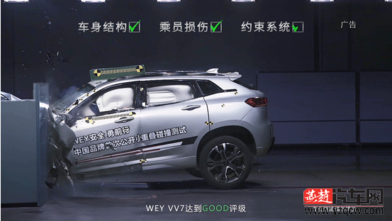 当天,WEY品牌的首款车型VV7在中国汽车技术研究中心实车碰撞试验室进行小重叠碰撞测试,这是中国品牌首次公开进行的小重叠碰撞测试,最终VV7获得了“Good”评级。