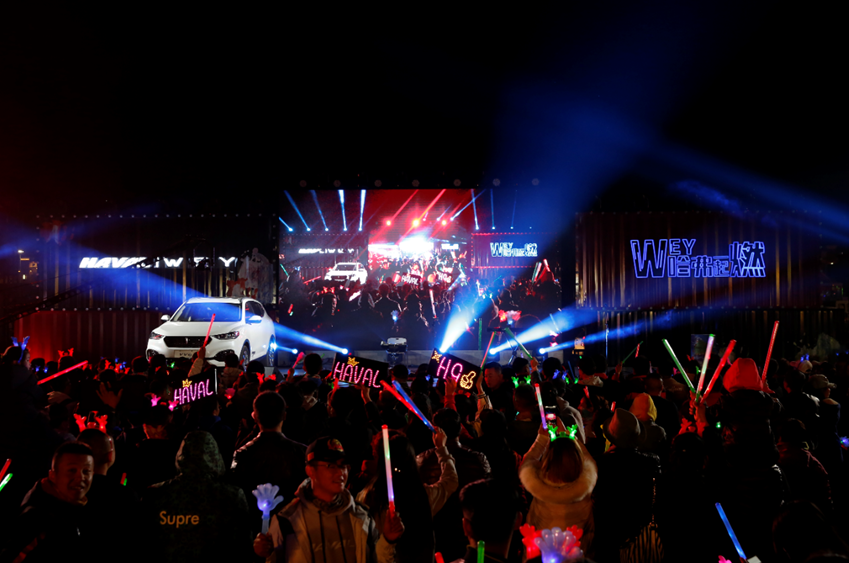 吉克隽逸则乘着WEY VV6早早抵达现场做准备。19:30分,舞台演出准时开始,怪兽乐队以一首激情摇滚野性开场,充满活力的表演与动感的节奏瞬间点燃了现场气氛。