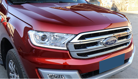 除了越野性能,对于越野车来说,消费者对于其外型和内饰的期望值可丝毫不低于动力和底盘,因为汽车同样需要遵循“细节决定成败”的理念,否则将难以在同级市场中长久立足。 普拉多的外型在2013款之后就鲜有明显改动,五道杠格栅造型和“大眼泡”豹式大灯组造型具有很高的辨识度,同时,普拉多作为一款上市已久的越野车型,其外形设计元素被后来者借鉴的案例也不少,可以说是外观造型较为成功的一款越野车。 普拉多的远光灯采用卤素光源,主要是为了照顾到野外驾驶,LED近光灯和日行灯则可兼顾城市和郊外等多种场景。 雾灯区域没有做过多修饰,造型相对单调一些,不过整车前部整体性得到了提高。 若论发动机盖上的线条谁最漂亮,非撼路者莫属,棱次分明的四条线增加了这一大块区域的层级感,设计越发精致。 即使是常见的六边形中等面积进气格栅,撼路者也能玩出特色,三条镀铬杠将格栅分为上下三部分,中间镶上福特车标,两端与大灯相连,虽传统但不落后。 整个雾灯部分与下颚相连,保险杠部分整体感虽有所下降,但视觉效果却得到了增强。 而哈弗H9拥有高端硬派越野车的外形,整体设计风格偏于典雅硬朗。 不论是孔武有力的整体造型还是外扩式轮拱设计细节都赋予了整车一种蓄势待发、高大威猛的气势。 前杠设计与整个前脸其他部分更显融洽,雾灯区域的线条勾勒巧妙, 这种设计为哈弗H9的前脸增添了不少肌肉感。