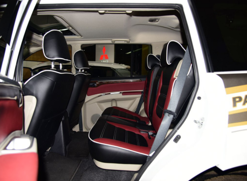 帕杰罗·劲畅 推荐车型:2013款 3.0L自动四驱旗舰版 新车指导价:30.88万元 市场优惠:4万元左右(仅供参考) 说起帕杰罗·劲畅可能很多不是很熟悉车的朋友可能不知道这款车,但它的大哥帕杰罗在国内几乎是家喻户晓的车型。而劲畅虽然说它有点小众,作为一款上市多年的车型,现在处于停产在售的状态,销量也一直不温不火,但在越野圈内它一直是一款口碑不错的硬派越野车。现在在售的劲畅还是2013款,多年未改款所以它的外观与这次推荐的其他三辆车相比看上去要老气不少,似乎与这个时代有点脱离。整车的造型依然是硬派越野车的粗犷风格,车身尺寸方面,它的长宽高分别为4695mm/1815mm/1840mm,轴距为2800mm。在这次推荐的四款车型中属于尺寸相对比较小的一辆,但实际的视觉效果还是很显大的。 这款3.0L自动四驱旗舰版采用的是邓禄普的全路况SUV轮胎,轮胎的花纹也要更加大一些,兼顾公路和非铺装路面的行驶,轮胎规格为265/65R17。这也一定程度上可以看出它与H9和撼路者定位的些许不同,劲畅兼顾的越野成分明显要更多一些。 相较于略显老气的外观劲畅的内饰看上去要更加的与时代脱离,虽然说劲畅是一款2013年换代的车型,但它的这套内饰设计明显是上个世纪的产物。无论是造型设计还是内饰用料都显得过于粗犷了些,这也是劲畅这款车一个最大的槽点。 配置方面作为一款多年未改款的车型,跟现在的同级别车型相比肯定是没有什么可比性的。虽然也配备了一块7英寸的多媒体屏幕,但无论是功能还是分辨率都像一块后加装的山寨货。仪表盘全指针的设计而且还缺少行车电脑显示屏,不得不说在配置上这辆车是明显缺失的。不过像电动座椅、前排座椅加热和倒车影像这些实用功能它还是有的。 在空间布局上这辆帕杰罗·劲畅也只有七座车型可以选择,在乘坐空间方面第一排和第二排的空间都没有什么大问题,至于第三排的空间就显得有些鸡肋了,受限于大梁结构头部空间十分局促。后备厢的最小容积为137升,放倒二三排座椅,最大容积可达到1499升,表现还不错。 帕杰罗·劲畅有2.4L四缸和3.0LV6