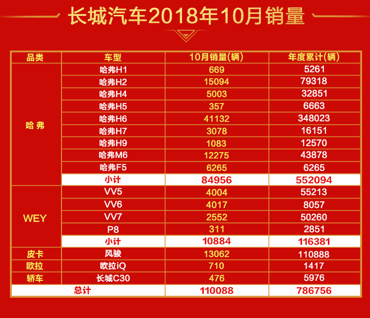 哈弗销量逆势再增近40%!在整体市场增速持续放缓的背景下,哈弗SUV10月销售8.5万辆,其中,“国民神车”哈弗H6再次用王者之姿睥睨10SUV市场,售出41,132辆,环比增长16%,以1.5万台的绝对优势远超销量排行榜第二名,累计65个月霸榜销量冠军!