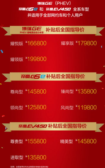 双十一的余温未散,双十二就这么粉墨登场了,这场全民狂欢的购物节已席卷各行各业。据编者了解,作为中国汽车品牌引领者的吉利汽车,在“双12”当天推出了针对有意向购买博瑞GE、帝豪GSe、帝豪EV450新能源车型的消费者“暖心”购车福利。 吉利汽车郑重做出“双重承诺”:承诺交定金购车价不变、承诺闪电交车。此举让担心明年补贴政策退坡和新能源牌照即将到期的准用户们吃下一颗定心丸。据了解,吉利汽车是首家做出“双重承诺”的传统车企,这与其逆市上扬的销量表现和强大的经销商网络分不开。 “价格不变承诺”将最大限度保证消费者的购车利益。凡在2018年12月31日前缴纳定金,并在2019年1月31日前完成提车的用户,无论2019年新能源补贴政策如何变化,吉利新能源承诺用户仍享受2018年官方指导价,并专享2018年度国家及地方政策补贴后的价格。 “闪电购车承诺”则确保用户能够尽快喜提爱车:凡在2018年12月31日前签订购车协议且缴纳全款或完成全部贷款审批并放款的客户,吉利新能源承诺将在2019年1月31日前,助用户完成提车。对于北京等新能源指标即将于明年2月到期的用户来说,无异于及时雨。 据了解,作为中国品牌领军者,吉利汽车不仅在传统燃油车上保持中国品牌销量第一的领先优势,在新能源和电气化汽车上也后来者居上,逐步实现了技术上的领先。早在十几年前,吉利就开始了新能源战略布局和技术储备。2015年吉利汽车发布了“蓝色吉利行动”战略蓝图,提出“让消费者实现用购买传统汽车的成本拥有混动汽车的梦想”。 近年来,吉利汽车坚持多元化、务实的新能源发展战略,通过平台化、模块化的发展路径保证技术领先,并迅速覆盖各细分市场,形成规模、降低成本,将实惠和便利带给消费者。2018年是吉利汽车全面迈入新能源汽车时代的元年。今年5月份,吉利汽车正式发布了新能源动力系统——智擎,涵盖了纯电技术、混动技术、氢燃料电池技术、替代燃料四大技术路径,致力于成为全球新能源节能技术引领者和普及者。同时积极推进新能源销售网络的建设工作,建立更加便捷的新能源销售和服务渠道。 统计数据显示,今年11月份,吉利新能源及电气化车型销量再次破万,达到10575辆,其中帝豪GSe、博瑞GE和帝豪EV三款车型占比达78%,呈现良好的增长态势,新能源汽车已成为吉利汽车发展的全新增长点。 作为吉利全面迈入新能源汽车时代的科技智混新旗舰,博瑞GE PHEV采用吉利和沃尔沃联合研发的1.5TD+7DCT动力总成。其配备11.3kWh超高容量三元锂电池,纯电续航里程最长达到60km,百公里加权油耗仅1.6L,百公里加速仅7.4S。博瑞GE凭借其多项越级科技配置,让广大消费者体验到了买得起、用的爽,确立了其新能源B级车市场引领者地位。 帝豪GSe则是一款专为城市年轻、小资、精致、时尚人群量身设计的纯电跨界SUV,其线条简洁、明快、更加运动,也能够有效降低风阻系数、减小能耗。帝豪GSe搭载宁德时代轻量化高能智控电池,电池能量密度达142Wh/kg,其与HEDS高效电驱以及智能高效精敏电控所组成“效能金三角”,整车工况续航里程353km,并只需30分钟即可从30%电量充至80%。 帝豪EV450是吉利新能源较早征战于市场中的纯电动车型,拥有“敢领美学、敢性空间、敢想互联、敢为安全”。其三电系统采用HEDS高效电驱系统、轻量化高能智控电池系统、智能高效精敏电控系统。帝豪EV450奉行严苛的“4321”甄选标准,即450公里续航、30分钟可由30%快充至80%、2种极温畅行无忧、1公里只需7分钱。此外,帝豪EV还拥有帝豪家族超百万销量的品质保障,助其连续获得多个月销量冠军。 除了现有新能源车型以外,明年吉利还将推出GE11等多款新能源车型。吉利新能源此时做出的“双重承诺”,不仅显现吉利汽车加速推进“蓝色吉利行动”的决心和魄力,更能在关键时间点保障用户的购车利益。显然,吉利新能源的“双重承诺”将换取“双赢”局面。 |