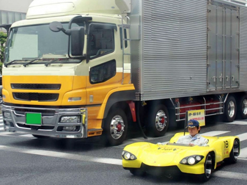 ( ^2 V- Y5 k8 E4 U# Y) C一款由日本浅口市冈山三洋高中的师生共同设计制造的小汽车因超酷的微型发动机而成为史上最矮汽车。据测量,这款小汽车虽然仅有45.2厘米高,但功能却强大到堪比任何汽车、公共汽车或卡车。