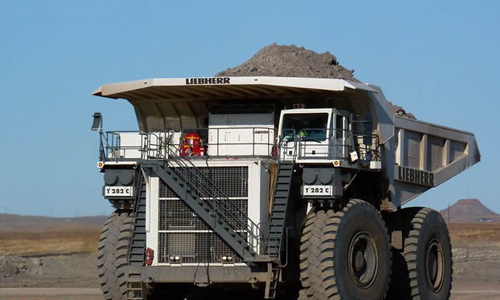 利勃海尔 T282于1999年生产,载重327吨;T282B为其升级版,2004年造,采用交流传动系统,多种动力配置,最大的一款柴油机为V型20缸,排量90升,重达10.5吨,扭矩为14457Nm, 柴油机带动交流发电机发电,驱动位于后轮内的轮毂电动机,轮胎为米其林的55/80 R63(直径约3.8M)。最大车速为64km/h。更重要的是它363吨的载重,目前天下无敌。