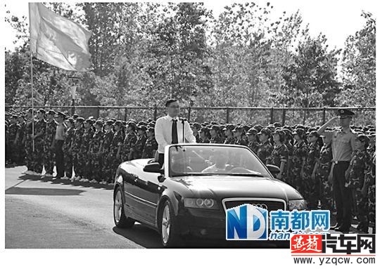 0 m. l' [# _" Z3 K. T3 @/ O 有网友经过一番检索后,在微博上晒出组图证实,新华学院至少从2010年起,便有校长军训期间乘车检阅新生的传统,只不过2010、2011年校方使用的是吉普车,2012年才改成无牌奥迪。