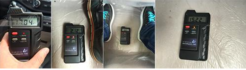2 k! |( j( c$ k7 g0 J2 h 上图为车辆匀速在40km/h时,主驾驶、副驾驶、主驾驶后排、副驾驶后排的辐射值分别为17.04μT、2.12μT、8.85μT、15.22μT。这个数值基本与通话中的手机辐射相近。