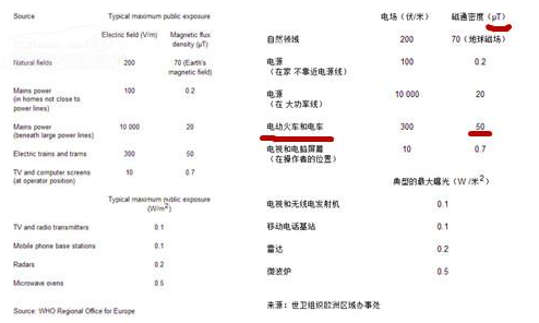 上图左边是在世界卫生组织官网的截图,上图右边是截图部分的译文,世界卫生组织认为,电动火车和电动汽车的电磁辐射应该在50μT以下,如果按照这个标准,那么比亚迪e6在电磁辐射上面无疑是合格的。
