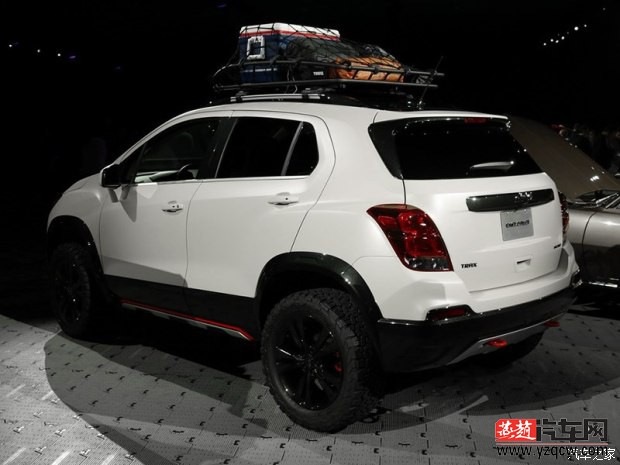 ' N x9 x# ^6 Y1 `% n『配图为雪佛兰创酷Active概念车官图』 雪佛兰创酷Active概念车相比普通创酷车型在车身高度上有所增加,前后保险杠也更换成大面积黑色塑料材质并配有红色拖钩,彰显出十足野性,此外,该车还配备了18英寸的黑色轮圈并使用AT轮胎(全地形轮胎)。
