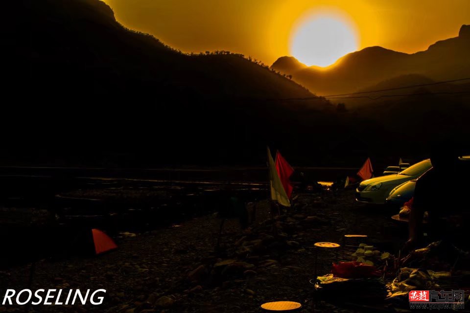 夜幕降临当太阳西下、夕阳照在这片宁静的河滩