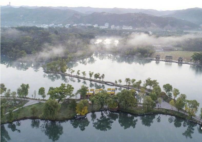 * ~/ S2 w' E0 K. p. u8 ] 金秋十月的避暑山庄别有一番风味,景色美如画,避景区内湖水雾气升腾,宛如仙境。山庄之外的外八庙在晨光中,宏伟壮观,周边的树木泛黄秋意渐浓让人画中游,宛如游荡在童话世界。