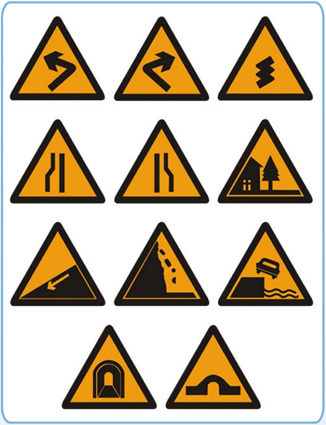 没错,确实是“回忆”哦!因为这些标志其实在当年准备科目一理论考试时,大家都是学过哒!不过大部分人可能因为考取驾照之后没有实际遇到过,就都还给教练了。(只要你好好跟我学,我是不会告诉教练的!) 有过山路驾驶经验的同学一定知道,山路上有很多交通标志与公路上的不一样,并且与公路上“蓝底白字”不同,山路上的这些交通标志大多数是“黄底黑字”(额,不是白金和蓝黑啦!)。看懂山路的这些交通标志
